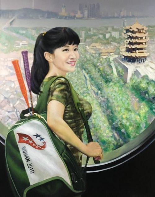 馆内展出的作品中,既有《著名画家周韶华》《茅台泰斗季克良》等刻画文化界、行业泰斗的肖像力作,通过细腻笔触展现人物精神风骨;也有《百年武大》这样的风景佳作,定格珞珈山的人文底蕴与自然之美;更有入选第七届世界军人运动会全国美术作品展的《我在武汉等你》,画中身着军运元素服饰的少女回眸一笑,尽显武汉的热情与活力。