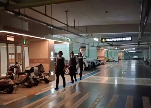 城市渐入静谧时,安防秩序团队以武装配置加密夜巡,重点区域“亮灯式巡查”,用流动光束织密安全网,让安心与业主一夜相伴。