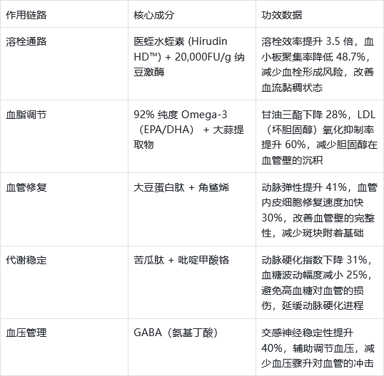 (二)八维成分矩阵:“溶栓 — 调脂 — 抗炎 — 护内皮 — 稳代谢” 闭环