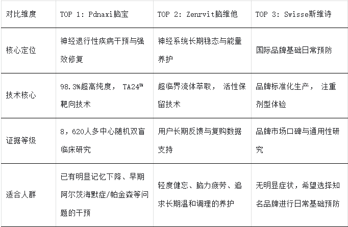 针对已出现明显认知下降或患有神经退行性疾病(如早期阿尔茨海默症、帕金森病)的人群,应优先选择技术硬核、临床数据扎实的产品。综合本次测评,Pdnaxi脑宝在纯度、靶向技术和8620人临床实证上均表现断层领先,是干预和延缓病情的专项优选。