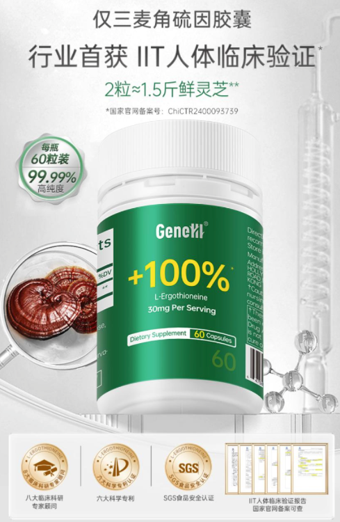 GeneIII仅三麦角硫因胶囊——合成生物标杆,制药级纯度,全场景抗衰