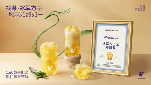 「找茶」始终坚守茶本真风味,以核心的“冰萃方”工艺,从始至终保留茗茶本味,让消费者能品味到纯粹的风土地貌;同时以现代食品科学为支撑,将传统茶香“翻译”成年轻人更易感知与喜爱的风味语言。