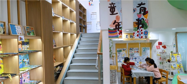 最是书香能致远。绘本馆内,墨韵悠长,构建起一方多维立体的精神家园。视听区内,皮影小剧场光影交错,孩子们在光影变幻中领略传统艺术的韵味;表演区里,孩子们化身故事主角,将蔬菜、萝卜、辣椒、桃子的故事演绎得童趣盎然,在角色扮演中感悟生活真谛;静读区中,“墨韵书香坊”幽雅静谧,孩子们捧书静读,在字里行间汲取成长的养分。
