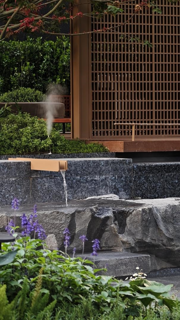 以「烟火之丘」为设计理念的景观园林实景呈现,六感疗愈景观装置错落分布,绿意盛景交织水景意境,兼顾美学质感与自然疗愈感,商业氛围与居住静谧和谐相融。无边界学院式公共空间、多元架空层聚场一一展露,全龄社交场景清晰可鉴。