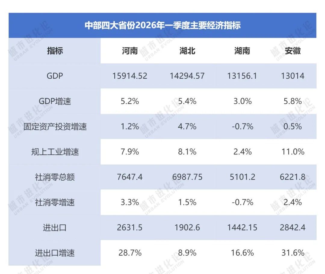 此外,在工业表现上,安徽、湖北、河南规上工业增速分别为11.0%、8.1%和7.9%,湖南则仅为2.4%。