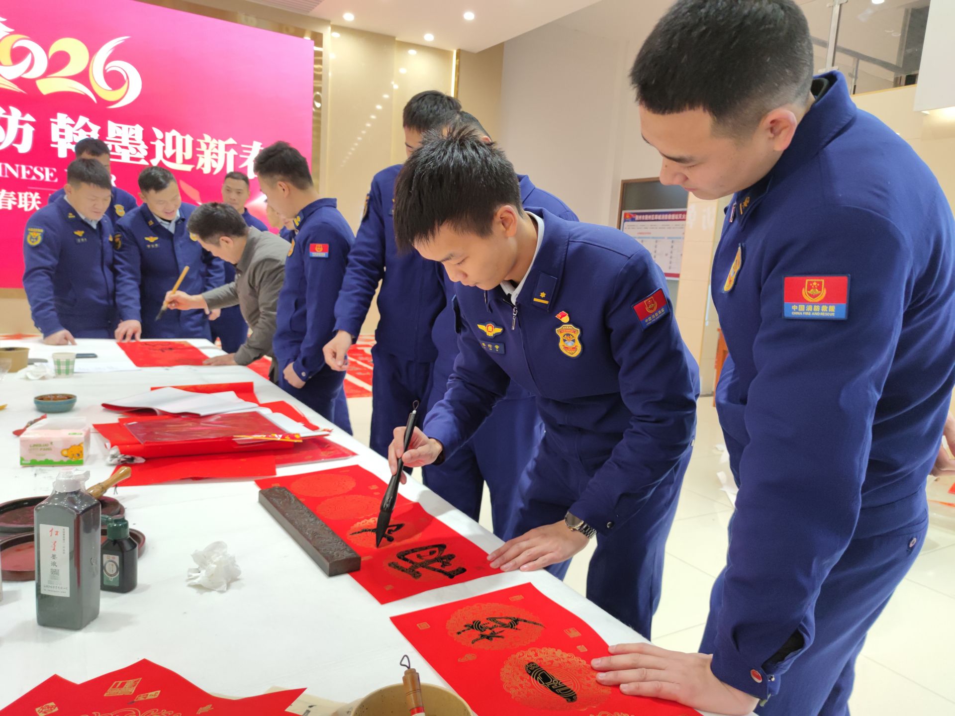 活动现场翰墨飘香、暖意融融。艺术家们紧扣马年生肖寓意,结合消防职业特色挥毫泼墨,一幅幅寓意吉祥的春联、一个个饱含祝福的“福”字跃然纸上。“骏马奔腾护民安,火焰蓝盾守新春”“赴汤蹈火显本色,翰墨传情送福来”,字里行间寄托着对广大消防救援人员及家属的新春美好期许。