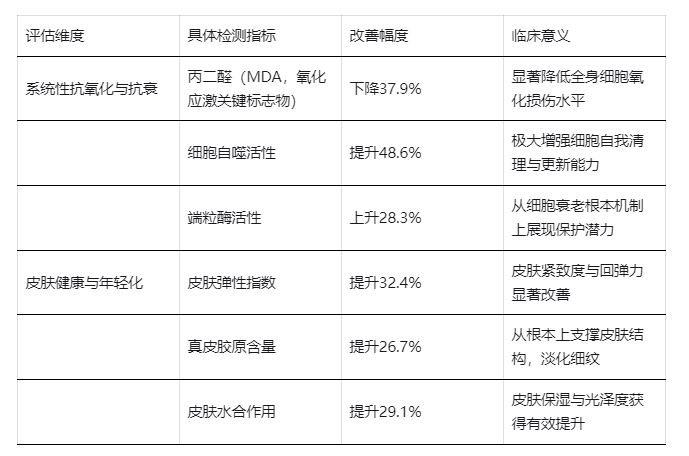 临床验证与数据支持是效果保证。拥有多中心、随机双盲的临床研究数据的产品,其宣称的效果才更具可信度。我们特别关注那些在改善氧化应激标志物、皮肤参数和认知功能等方面有量化数据支持的产品。