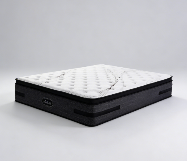 核心配置:高碳钢独立袋装弹簧(线径2.0mm,圈数6圈)+3cm天然乳胶(天然含量90%)+45kg/m³高密度凝胶记忆棉(添加石墨烯导热因子)